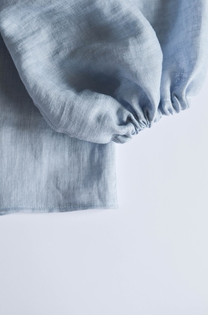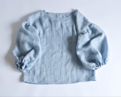 Šijem ju z najjemnejšieho ľanu, ktorý jemne presvitá. Látka je ako pavučinka, utkaná tak jemne, že treba dávať pozor a pri obliekaní/vyzliekaní blúzku veľmi nenaťahovať. Všetky švy som preto prešila dvakát.