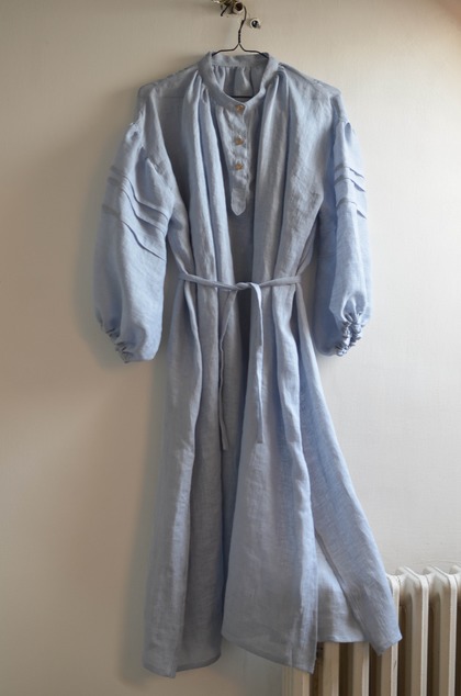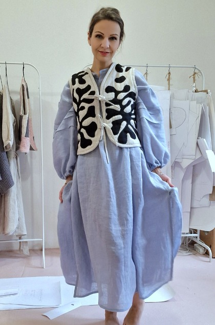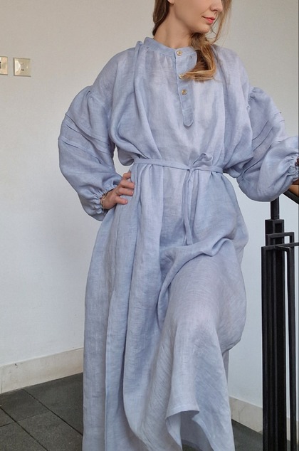 Voľné maxi šaty, ušité z jemnej ľanovej pavučinky. Jemne priesvitné. Skvele sa kombinujú so svetrom alebo vestou, v lete zasa ochránia pred páliacim slnkom.