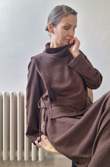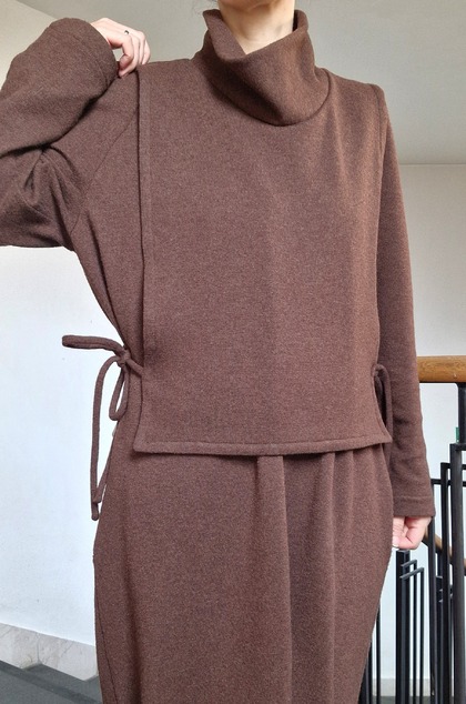 Vlnený warmer vo farbe horúcej čokolády zahreje, aj keď nie je vôbec hrubý. Príjemné mäkké objatie vlny ťa posunie do tepelného komfortu, nech si kdekoľvek.